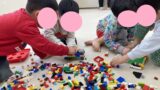 手は離さずにギュッと握ったまま、目を丸くして見ていたお友達!