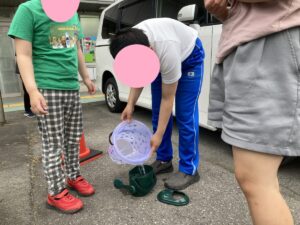 スタッフの周りに集まり、真剣にやり方の説明をききます。