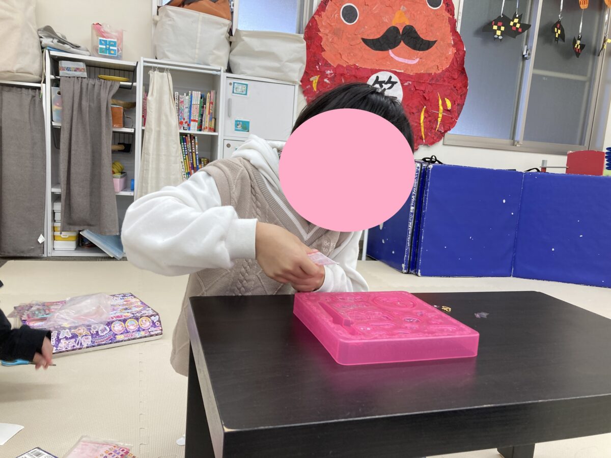 朝の自由遊びはキーホルダづくりに夢中なっていました😝