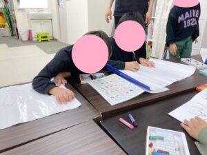 運動遊びの後はみんなでお絵描きタイムが始まりました!