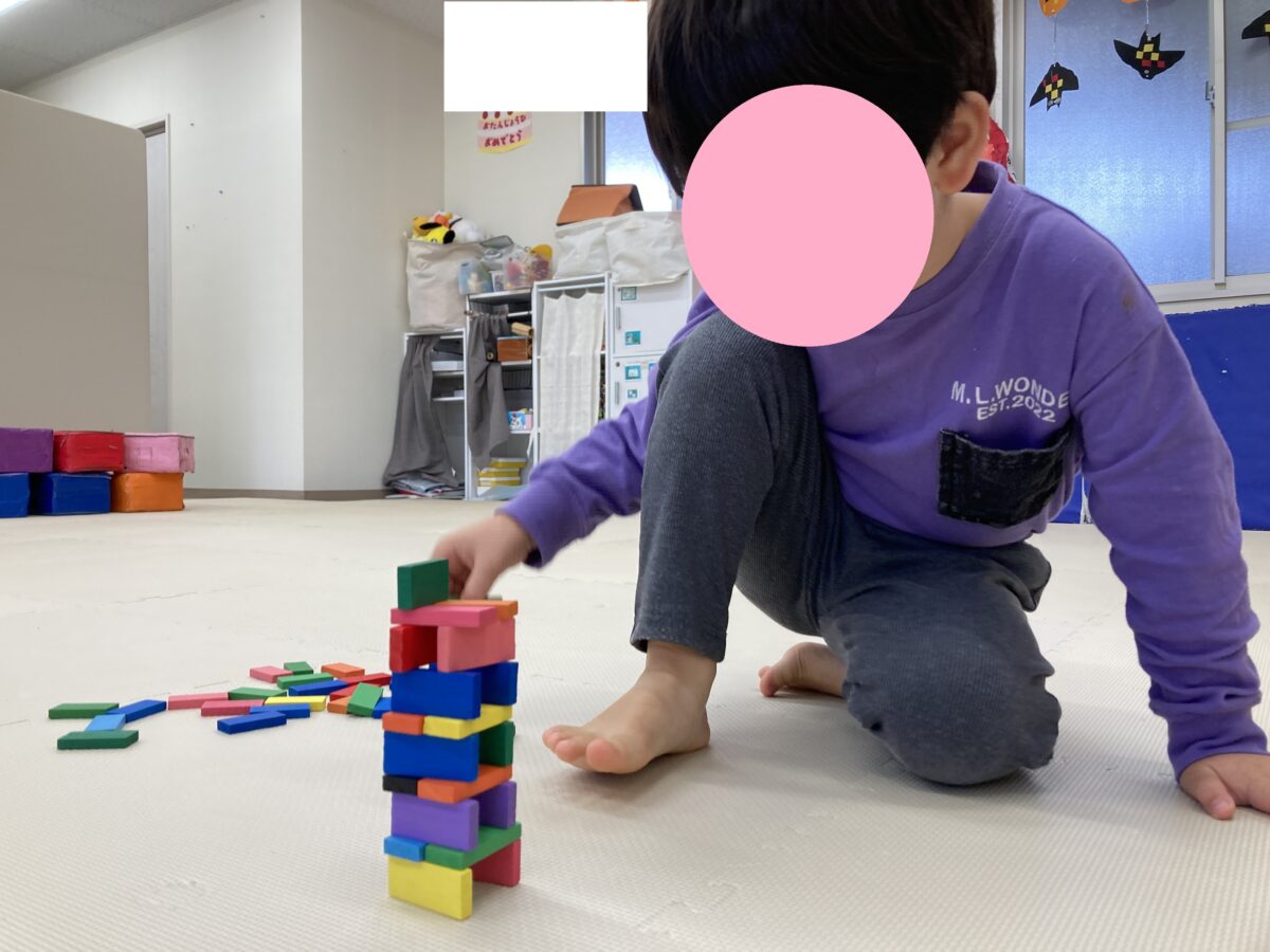 ドミノを積み上げていくお友だち😊