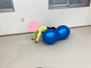 朝の自由遊びの時間はバランスボールを使いお友だちが仲良く体を動かしています。