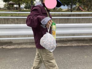 帰り道 袋にパンパンに入ったどんぐりが重かったですが、頑張って歩きましたよ
