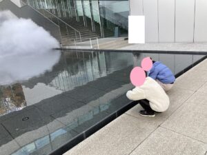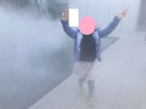 外に出ると丁度、ミストが噴射されワクワク感が止まらないお友だち!!