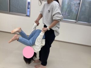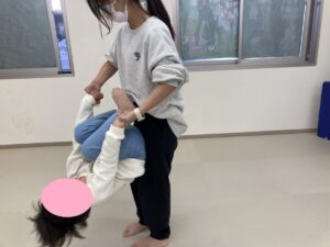 スタッフの手をギュっと握って自分の力でくるっと回ります!!