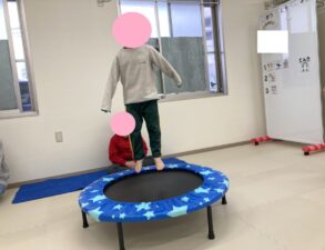 運動遊びはトランポリンをしました。みんな笑顔でジャンプ~!!