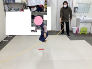 目線をしっかり前に向けて線の上をとてもかっこよく歩けています。
