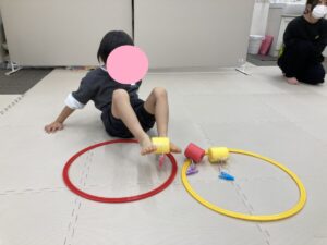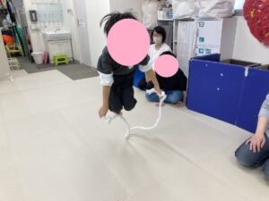 サーキットでは色分け、足で移動、1人縄跳びを行いました!