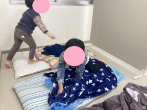 活動後はお昼寝のお布団を準備して・・・自由遊びです🚗