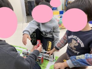 今日はトミカが人気で譲り合いながら仲良く遊ぶことが出来ていました!