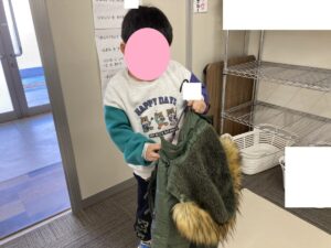 着てきた上着を自分のマークのハンガーに掛けて・・・