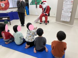 サンタクロースさんを前にするとお友だちは大張り切り!!今までの中で一番大きな声が出ていました!心を込めた最高の歌声をサンタさんにプレゼントすることができましたよ👏