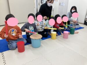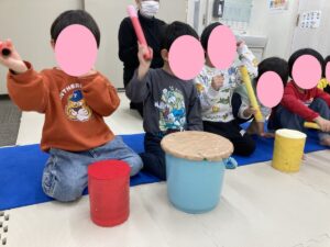 手作り楽器で上手に演奏するお友だち!一生懸命に演奏する姿がとても素敵でした!