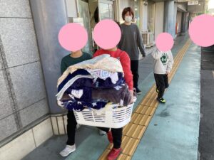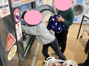 お友達と協力して洗濯物を運び、洗濯機の中に入れてくれました😊