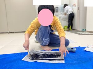 壁面を来年の物に変えるためにお手伝いをしてくれているお友だち!