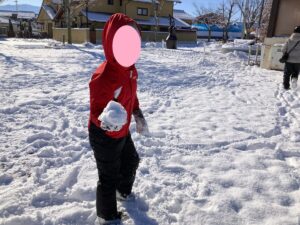 今日は、朝一番で裏の広場まで、今年初の雪遊びに出かけました✨