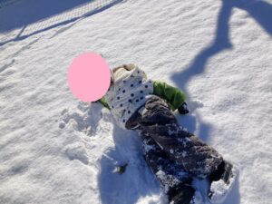 全身で雪の感触を楽しみ、冬ならではの自然を満喫し大満足のお友だちでした😊😊