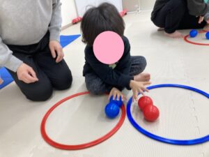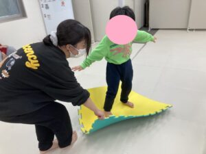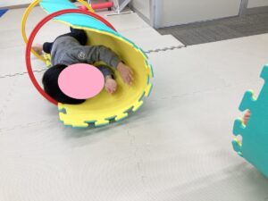 運動遊びではマットサーフィン・ボールクロス交換・ゆらゆらトンネル