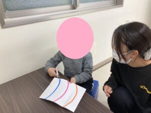 運筆・はさみ・あずま袋などそれぞれの課題に真剣な顔つきで取り組めました😙