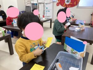 北長野教室でも節分行事に向けて豆まき用の升を作りました😊