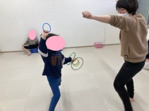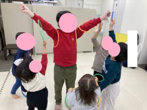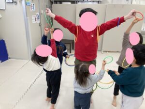 今日の運動遊びは「輪っか」〇を使った遊びです