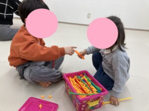 『どうしよう~?』と組み方を考えながら形にする姿があり、遊びを発展させるのがとても上手なお友だちたちです!
