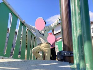 手すりが無く少し怖い滑り台もお友だちと一緒なら大丈夫😊