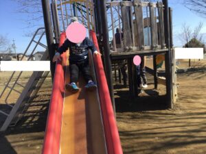 公園に到着するとまず、滑り台に走るお友だち!