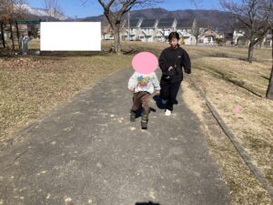 こちらのお友だちはスタッフと一緒に公園の周りをランニングです!