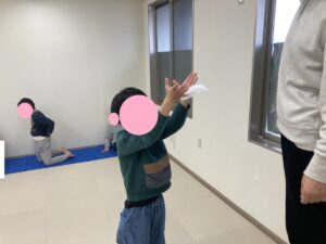 運動遊びでは『ティッシュキャッチ』をやりました。