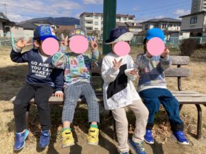 「疲れた~😖」とお友だちと仲良くベンチに座り休憩する姿もあり