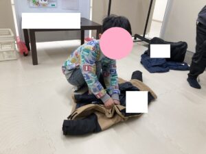 冬の間ジャンパーをハンガーに掛けるを継続し練習してきたお友だち😊