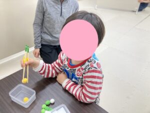 お箸..安定してお箸を持ち、スポンジもしっかりと摘まめるようになりました✨