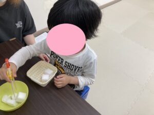 リトミックではお友だちが大好きな「スキップキップ」を行いましたよ!