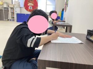 入室後、課題を頑張っている放デイのお友だちたち( ..)φ