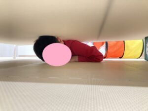 狭いすき間を進むときに、お腹をしっかり床に付けて手と足を交互に出して